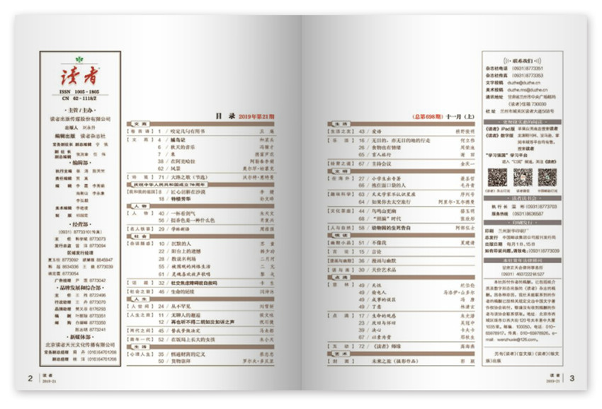 《讀者》給讀者帶來全新的閱讀體驗,無論發行量還是影響力,均在文學文摘雜志中位居前列。在刊物內容及形式方面與時俱進,追求高品位、高質量,力求精品,并以其形式和內容的豐富性及多樣性,贏得了各個年齡段和不同階層讀者的喜愛與擁護。