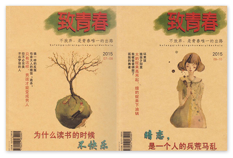 《致青春》是與《讀者》、《格言》、《意林》一起,專門針對正在人生成長關鍵期的中學生制作了一本精品雜志,中學生成長過程中面臨的學習的困惑,日常生活的趣味,考試作文的疑難,面臨親情的矛盾,朦朧愛情的憧憬和淺嘗。